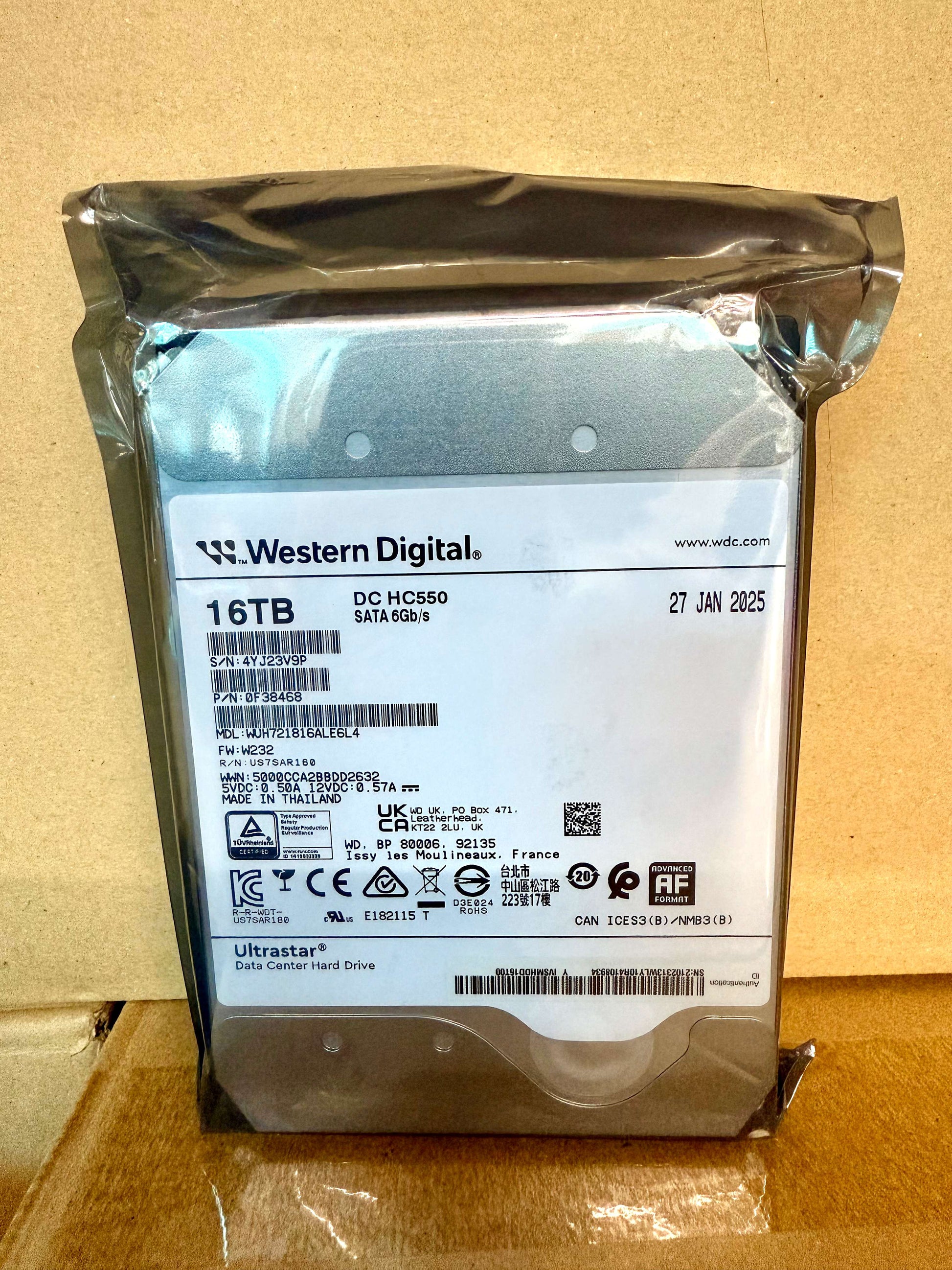 WD Ultrastar DC HC550 16TB SATA 3.5" Enterprise HDD WUH721816ALE6L4 0F38462 NEW 2025